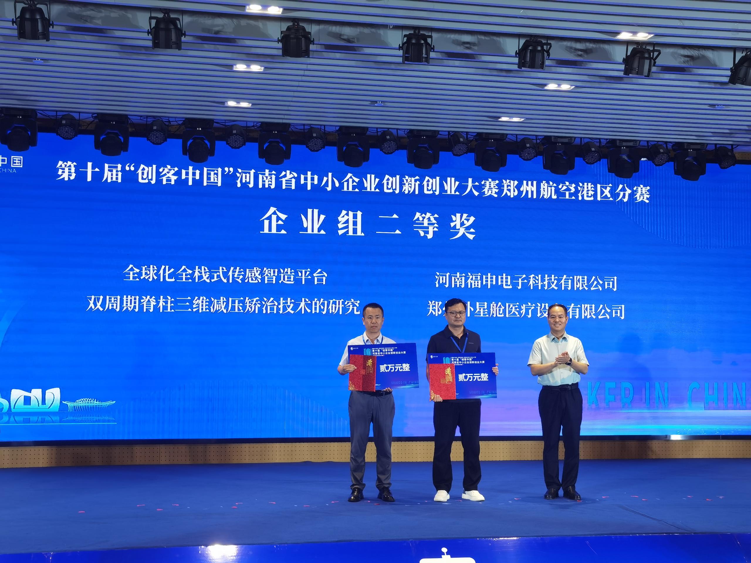 河南健康廣濟生物技術有限公司的“止血先鋒,救死扶傷——動脈止血行業的引領者”項目,河南福申電子科技有限公司的“全球化全棧式傳感智造平臺”項目,鄭州外星艙醫療設備有限公司“雙周期脊柱三維減壓矯治技術的研究”項目,鄭州康佰甲科技有限公司的“自排式輸尿管支架”項目,鄭州嘉泰生物科技有限公司的“新型微創光動力口腔治療系統”項目,鄭州航空港區羽豐醫療科技有限公司的“基于AI識別骨骼關鍵點技術研發項目”分別獲得企業組一、二、三等獎。