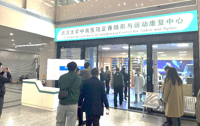 會議期間,足脊矯形與運動康復工作委員會秘書蘇杭帶領參會人員參觀武漢大學中南醫院足脊矯形與運動康復中心,為大家詳細介紹、展示目前中心配備的脊柱超聲、三維牽引等先進設備。